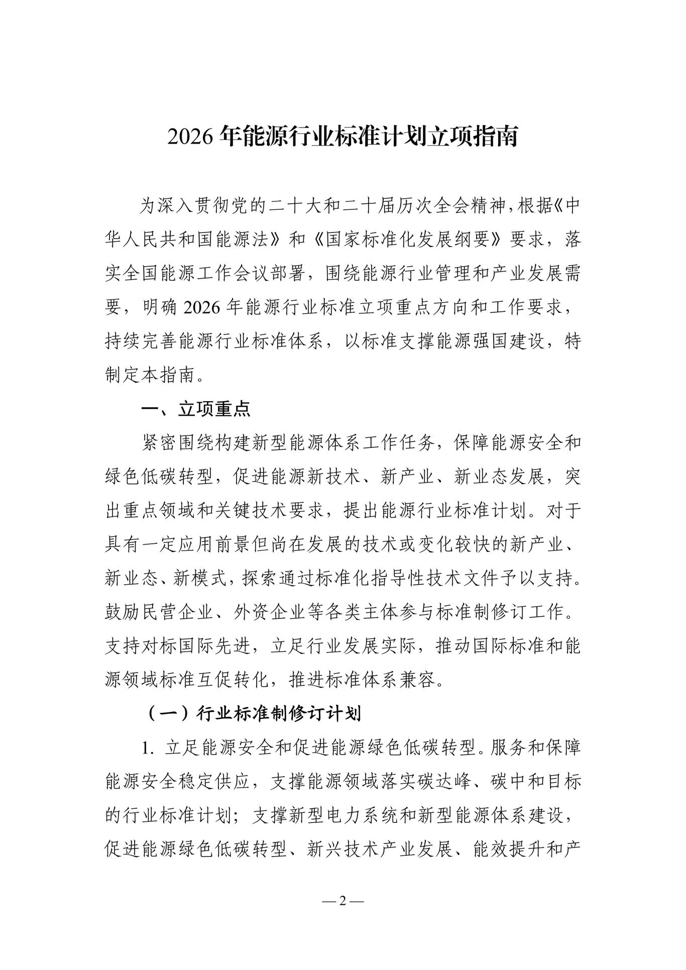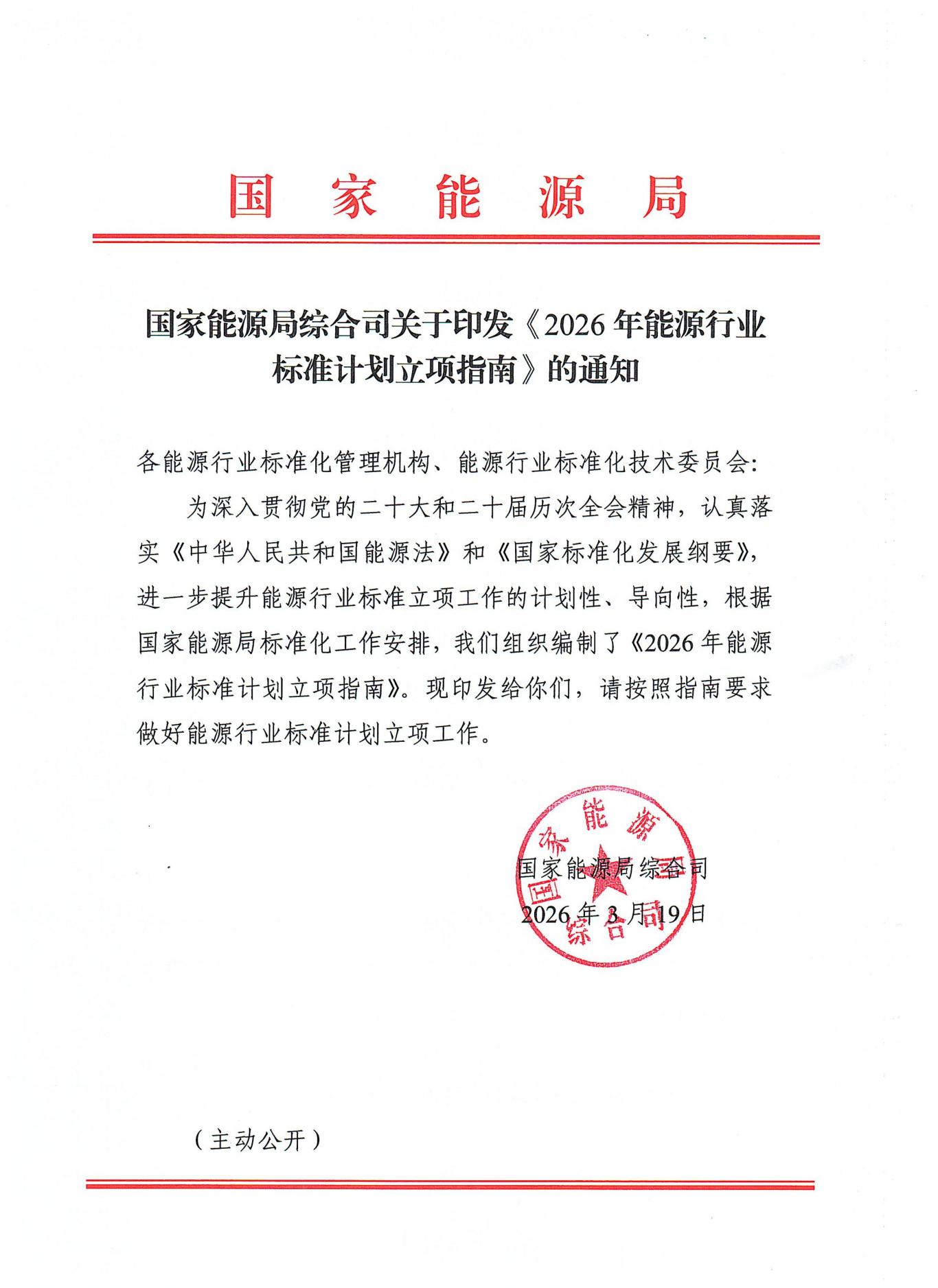 国家能源局综合司关于印发《2026年能源行业标准计划立项指南》的通知 |